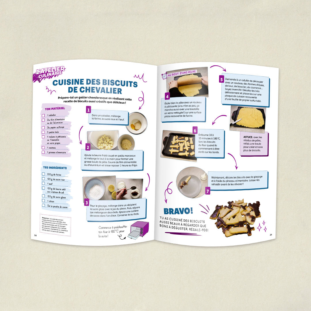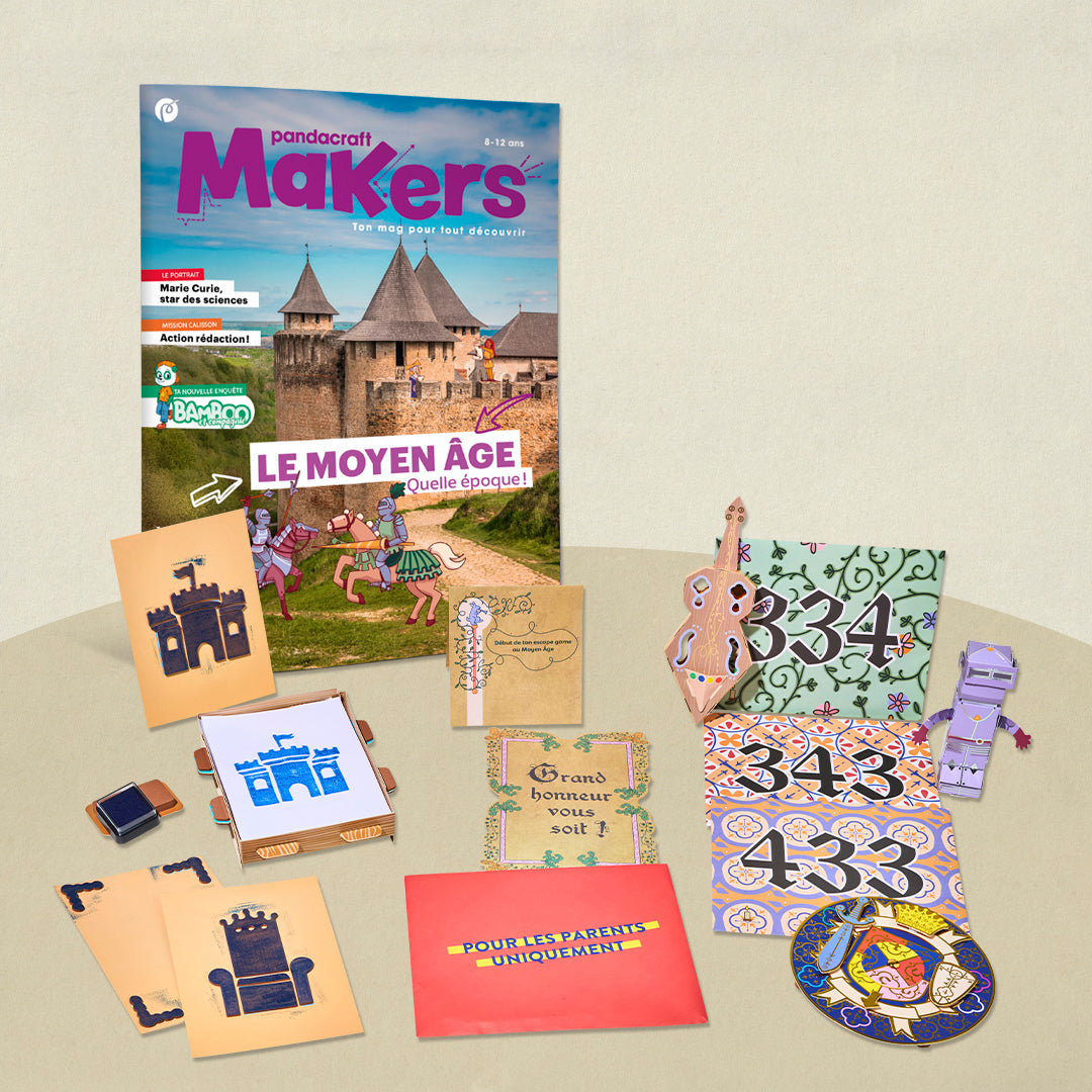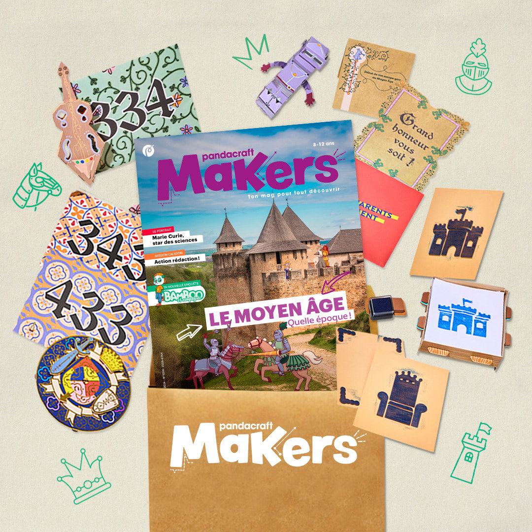 Dans le magazine, retrouve une interview métier avec un reconstituteur historique, un atelier biscuits chevaliers, le portrait de Marie Curie, et la Mission Calisson pour fêter le 100ᵉ numéro de Pandacraft 🎉.